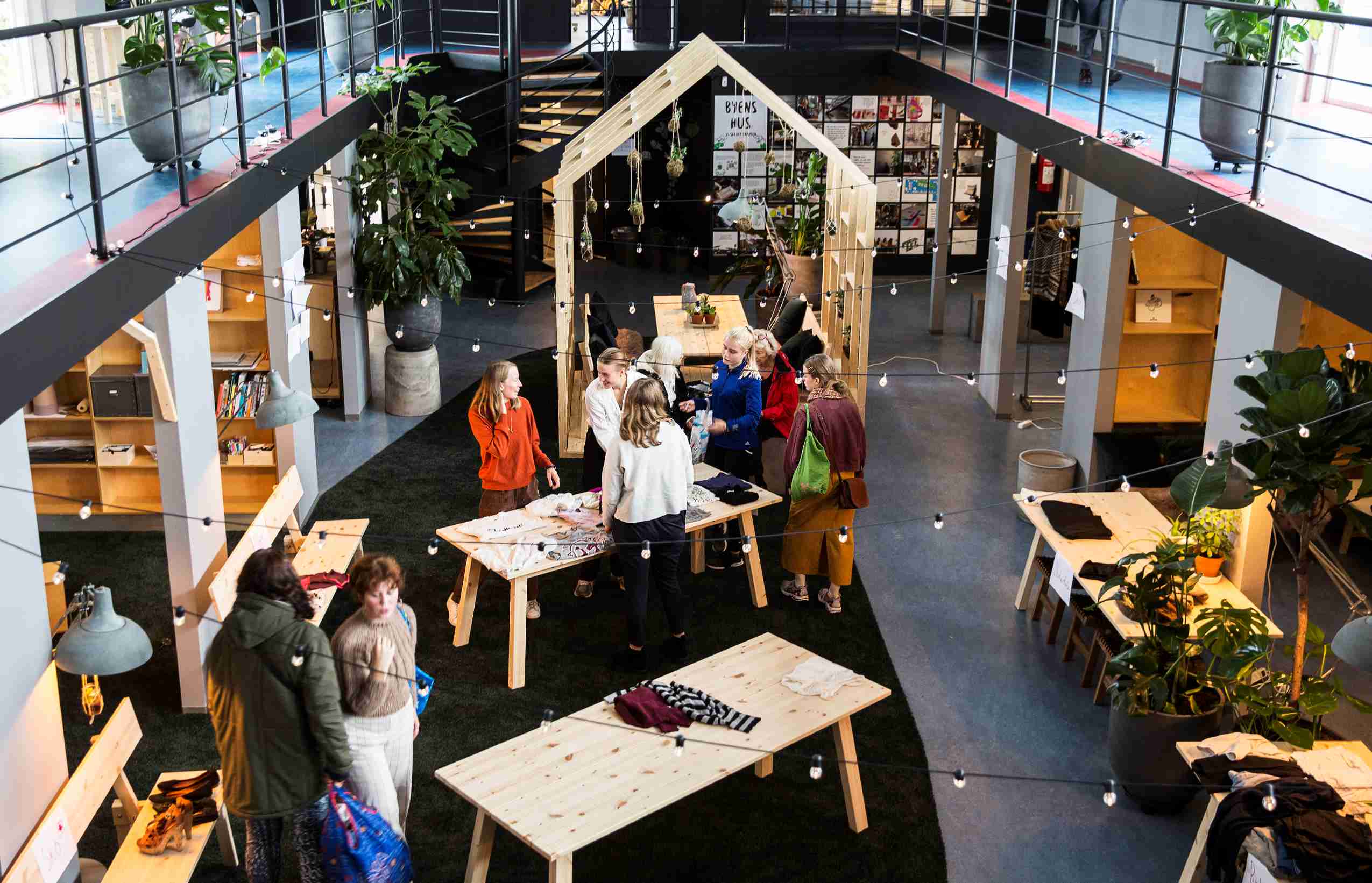 - Byens Hus har forskellige åbne værksteder, en Repair Café, et åbent atelier for unge, et podcaststudie og tre større arrangementsscener.